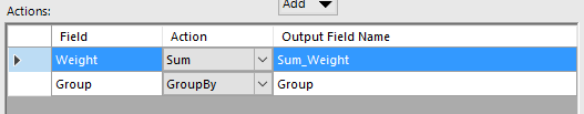 <SummarizeField field=“Weight” action=“Sum” rename=“Sum_Weight” />