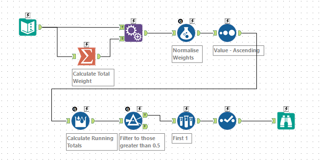 After recently building a weighted median calculation for Tableau I was thinking about doing an Alteryx version, thanks for doing this!
