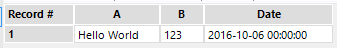 This creates a single record with 3 columns, but shows you conversion of strings, ints and DateTimes: