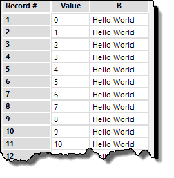 The result in this case is a 1000 rows long, each consisting of a row number and a text field: